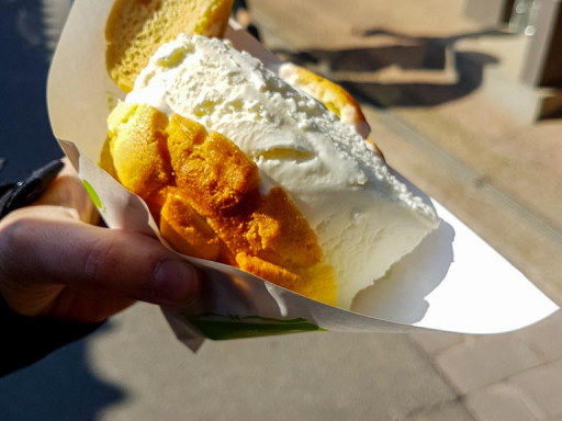 La gaufre de Hong Kong est immédiatement reconnaissable à sa forme caractéristiques de petites « boules » reliées les unes aux autres par une fine couche de pâte. L’extérieur est délicieusement croustillant tandis que l’intérieur est chaud, moelleux et léger. Attention, ce produit peut vite devenir une addiction